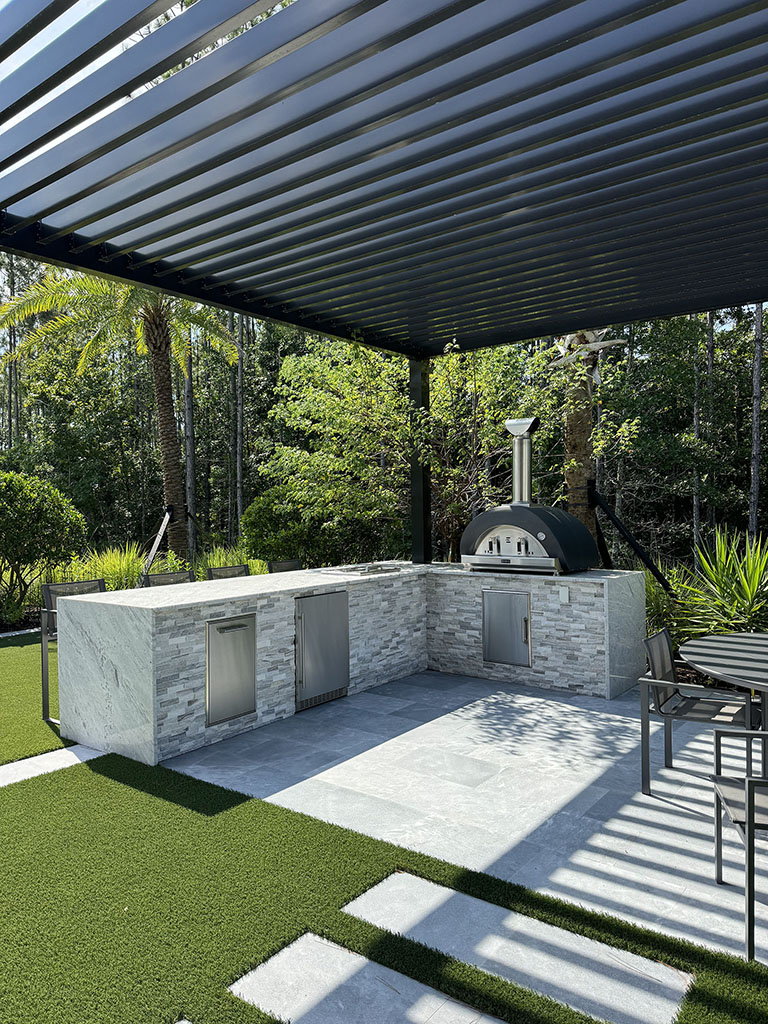 At Tier 1, we offer complete backyard planning, with the option to integrate features like outdoor kitchens, fire pits, water features, fireplaces, pergolas and more – creating a seamless and luxurious extension of your home.